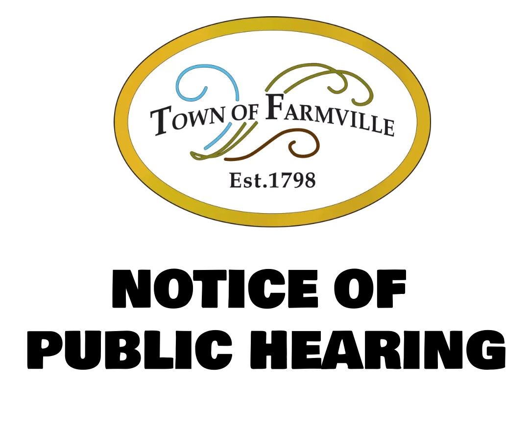 The Farmville Town Council will hold a public hearing on Wednesday, April 8, 2026, at 6:00 PM in the Council Chamber, located on the second floor of the Town Hall, 116 North Main Street, Farmville, Virginia, to receive public comment on the following items: